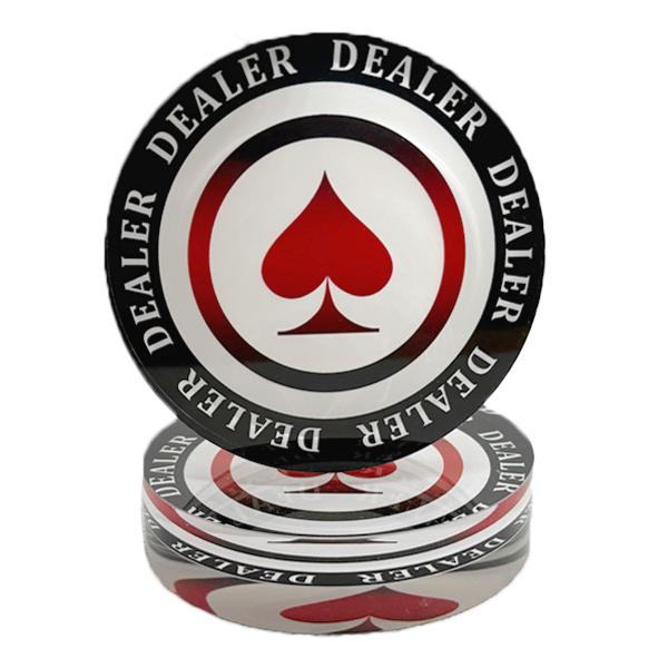 Les accessoires supplémentaires essentiels et divertissants adaptés à divers types de jeux de poker comprennent des boutons de croupier, des boutons "all-in", des jetons d'addition, des jetons de rachat, des plaques et bien plus encore.