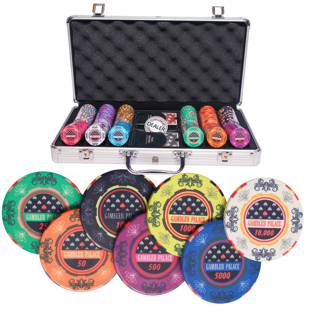 De Gambler Palace is een van de meest populaire Pokersets in onze collectie. De chips zijn gemaakt van keramiek en worden vaak gebruikt door ervaren en professionele pokerspelers. De Gambler Palace hebben een uitstekend en gedetailleerd ontwerp en zijn gemaakt met een complete printmethode. De Pokerchips hebben uitgelijnde print in de randen om het prestigieuze ontwerp van de Pokerchips te evenaren.