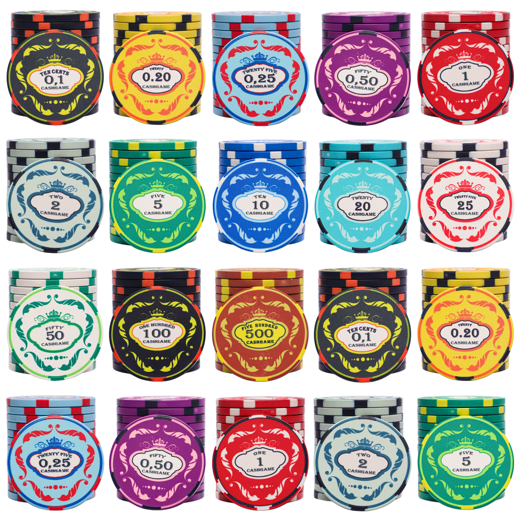 Our Ceramics Crown Poker Chips are frequently bought Poker Chips. Crafted from Ceramic material, these Poker Chips feature a beautiful design created using a complete print method. Every Poker Chip has perfectly aligned edges to complement the design. With its high-quality and unique look, this Poker Chips is an ideal option for poker lovers who are looking for durable Poker Chips known for its strength and durability that will last for many years. The Poker Chip Set is designed for poker players who need the Poker Chips without the Case, but it is still possible to add a Case if desired by customizing the configuration.