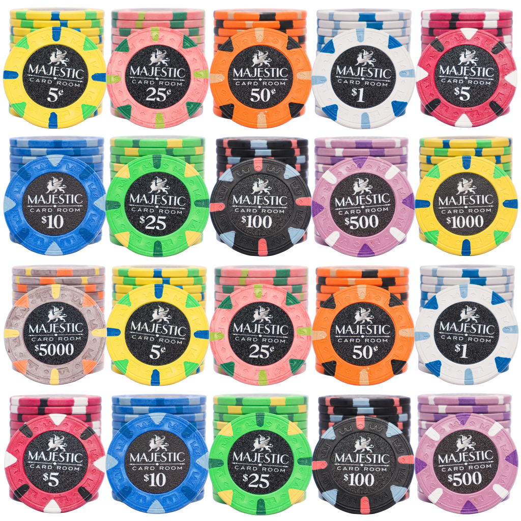 Our Majestic Poker Chips are a Poker Chips we highly recommend. Crafted from Pure Clay material, these Poker Chips feature the best quality we offer created using a sticker printing method. Every Poker Chip has perfectly aligned edges to complement the design. With its high-quality and unique look, this Poker Chips is an ideal option for poker lovers who are looking to take their home poker games to a more competitive level. The Poker Chip Set is designed for poker players who need the Poker Chips without the Case, but it is still possible to add a Case if desired by customizing the configuration.