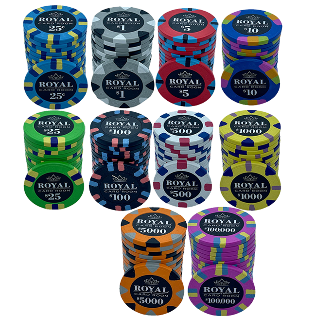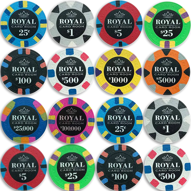 Our Royal 43mm Poker Chips are a Poker Chips we highly recommend. Crafted from Pure Clay material, these Poker Chips feature the best quality we offer created using a sticker printing method. Every Poker Chip has perfectly aligned edges to complement the design. With its high-quality and unique look, this Poker Chips is an ideal option for poker lovers who are looking to take their home poker games to a more competitive level. The Poker Chip Set is designed for poker players who need the Poker Chips without the Case, but it is still possible to add a special 43 mm Case if desired by customizing the configuration.