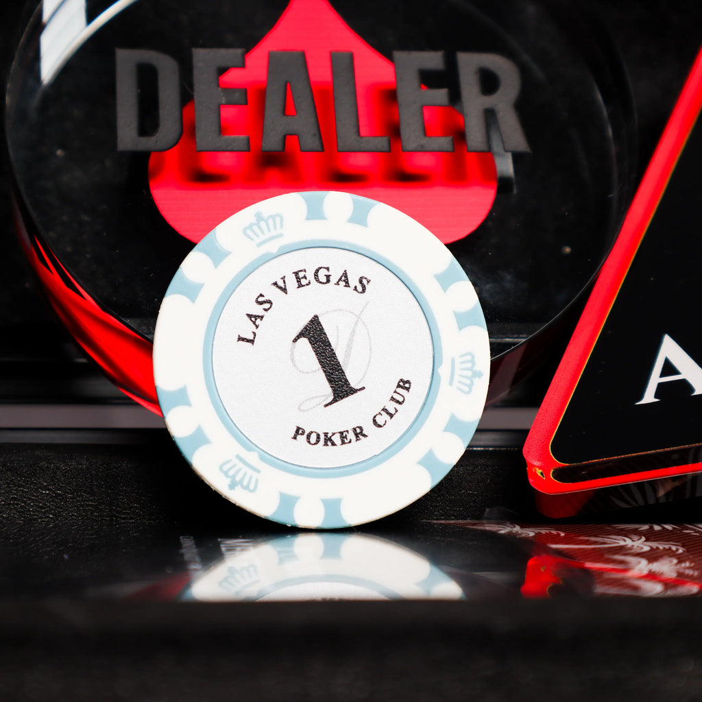 The Vegas Poker Club is one of the most popular Poker Sets in our collection. The chips made of Clay Composite material and are often used in poker games all over the world. The Vegas Poker Club have a simple and clean design and are made with a sticker printing method. The Poker Chips have aligned edges to match the outstanding design of the Poker Chips.
